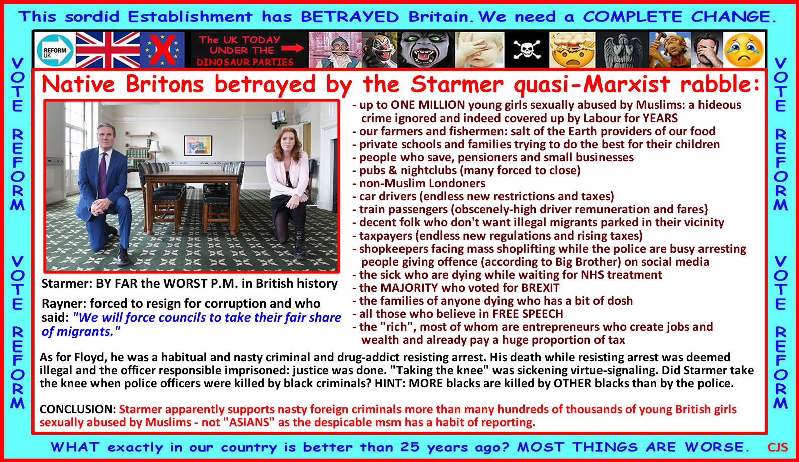 Jeremy Corbyn is rabidly Marxist, anti-Semitic and treasonous, yet was leader of the Labour Party from 2015 to 2020. That's FIVE YEARS only THREE YEARS ago. And we are supposed to believe that this rancid party has radically changed because it has Starmer? |